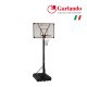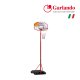 Basket stand with height-adjustable tower, suited for children and teenagers.